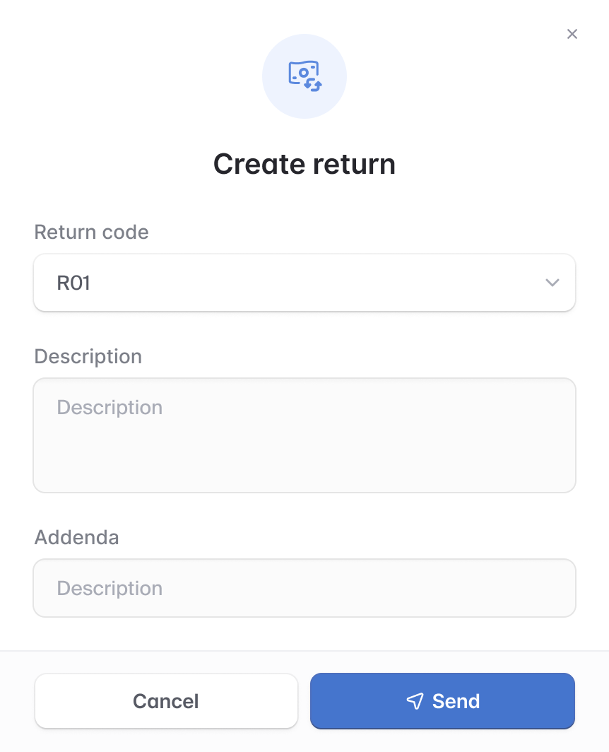 Initiate any NACHA return code via our API.