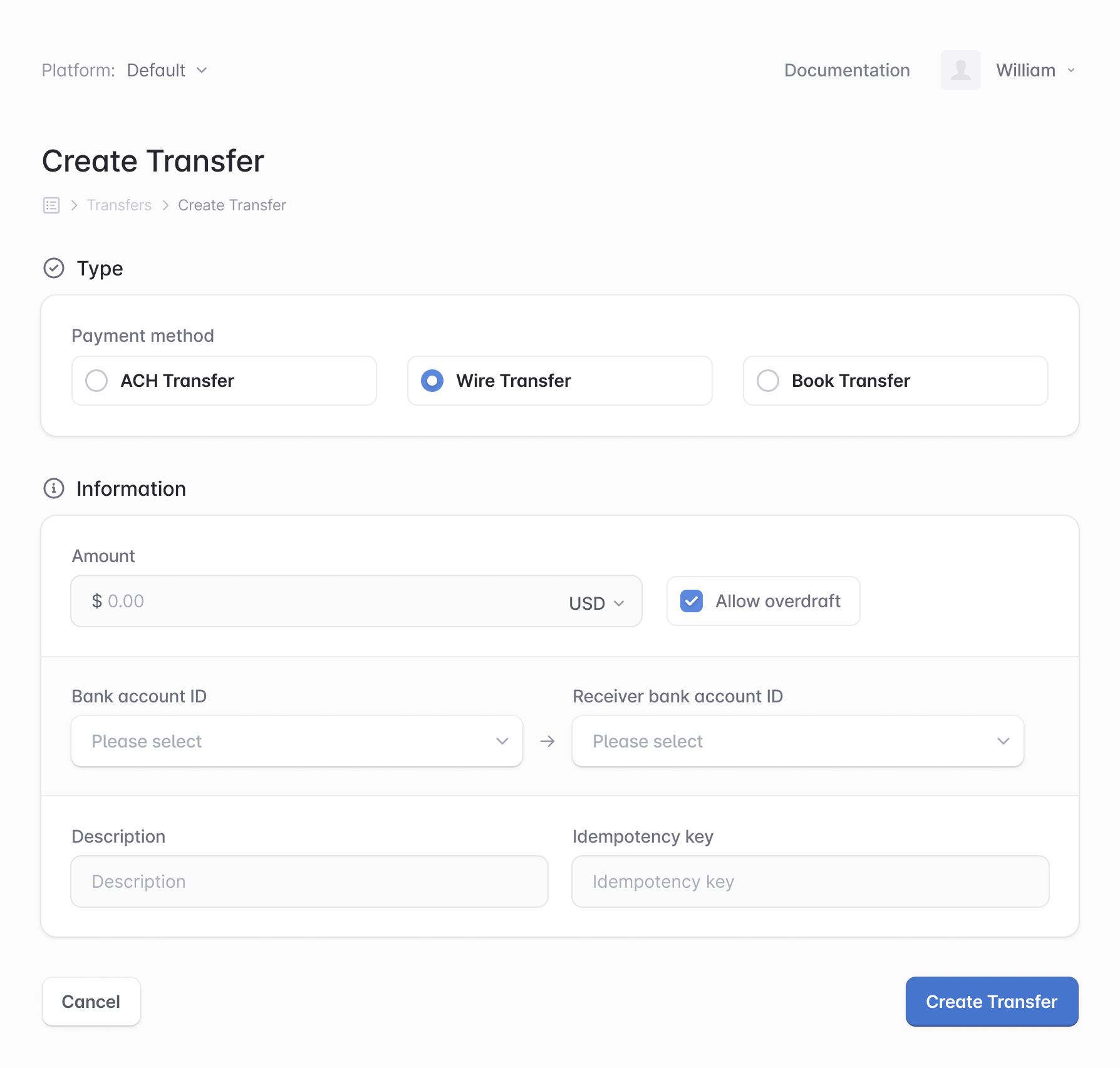 Programmatically send wire transfers with one API call.